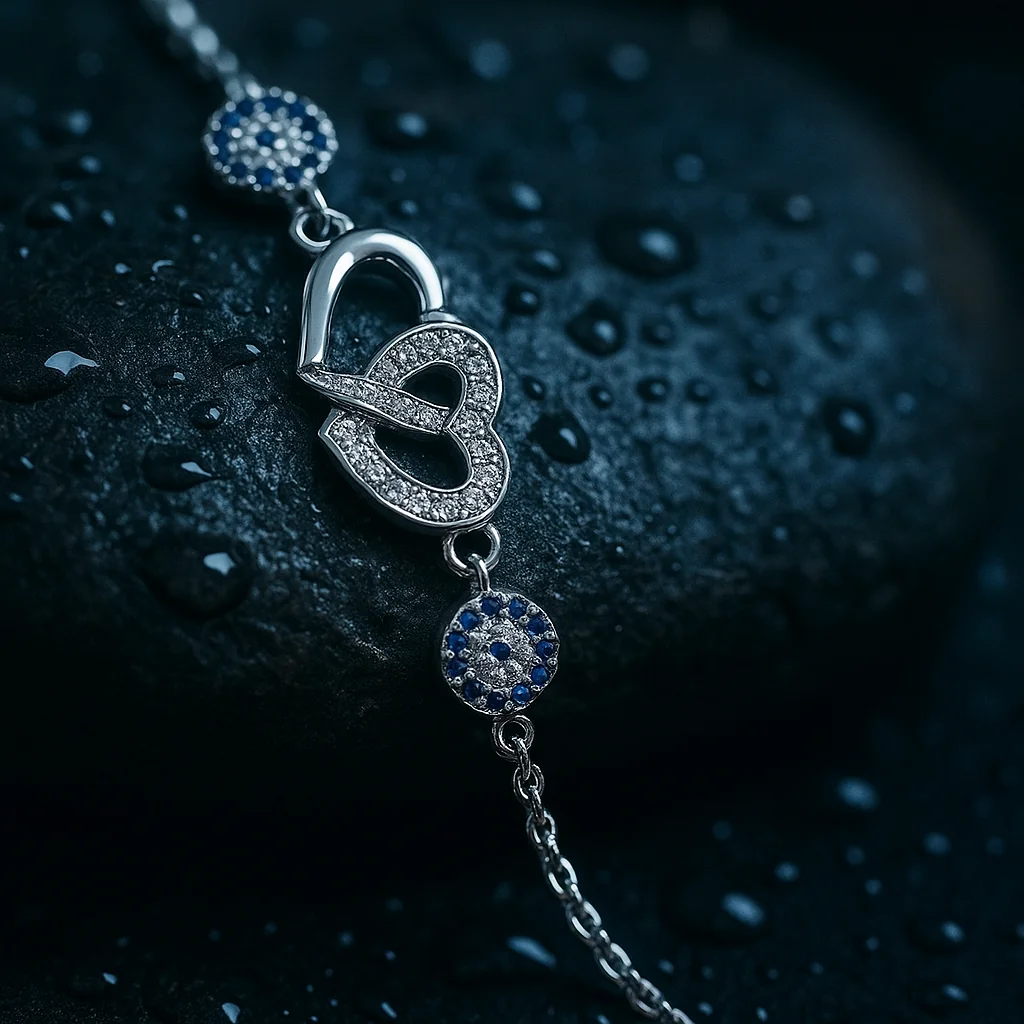 دستبند نقره ۹۲۵ طرح قلب و چشمنظر 💙✨