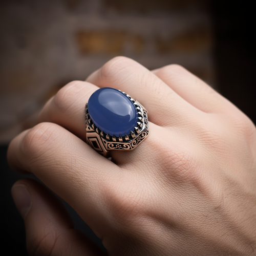 انگشتر مردانه ، نقره عیار 925، سنگ عقیق کبود یمن ، طرح رکاب هشت ترک، توصیه شده اهل بیت علیهم السلام مناسب برای رزق و روزی و خیلی برکات دیگر ، نقره بقیع