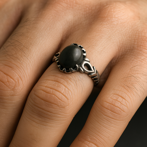 انگشتر مردانه . نقره عیار 925 . سنگ حدید صینی . دفع کننده قوی انرژی های منفی . نقره بقیع