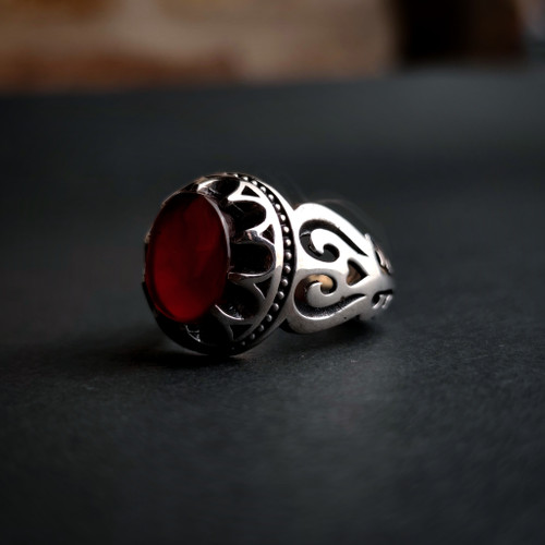 انگشتر مردانه ، نقره عیار 925، رکاب دست ساز ، سنگ یاقوت سرخ گرید ۱ ، طرح رکاب فیلی ، نقره بقیع