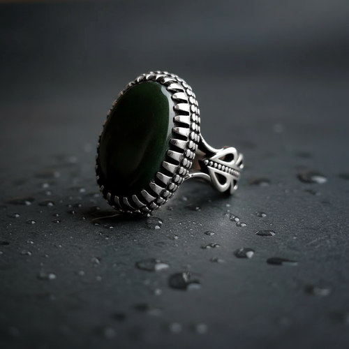 انگشتر مردانه ، نقره عیار 925، سنگ یشم افغان ، طرح رکاب لاکچری ، نقره بقیع