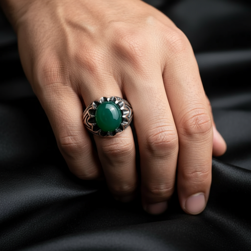 انگشتر مردانه . نقره عیار 925 . طرح رکاب : صفوی و اشک . سنگ عقیق سبز . خیلی جذاب . نقره بقیع