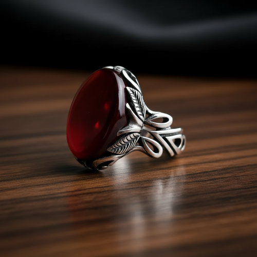 انگشتر مردانه ، نقره عیار 925، سنگ عقیق سرخ ، طرح رکاب فیلی ، نقره بقیع