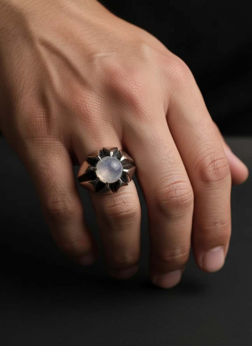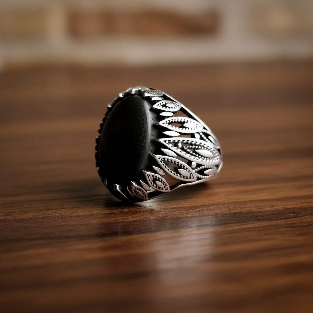 انگشتر مردانه . نقره عیار 925 . سنگ حدید صینی . دفع کننده قوی انرژی های منفی . نقره بقیع