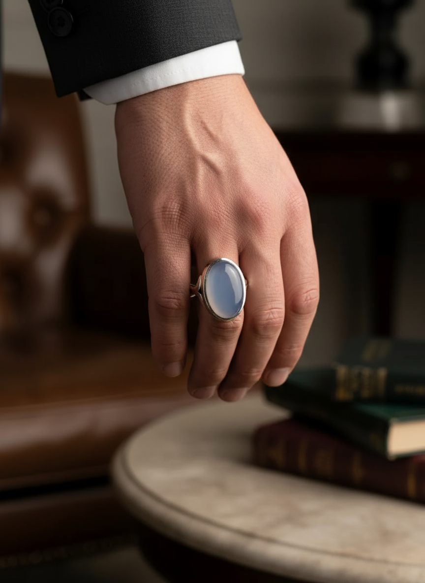 انگشتر مردانه ، نقره عیار 925، سنگ عقیق کبود یمن ، طرح رکاب هشت ترک، توصیه شده اهل بیت علیهم السلام مناسب برای رزق و روزی و خیلی برکات دیگر ، نقره بقیع