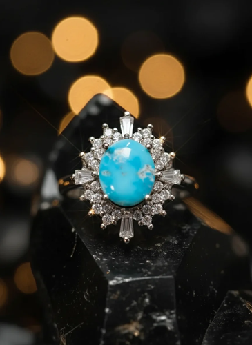 انگشتر نقره زنانه با سنگ فیروزه اصل نیشابور – طرح سلطنتی و درخشان