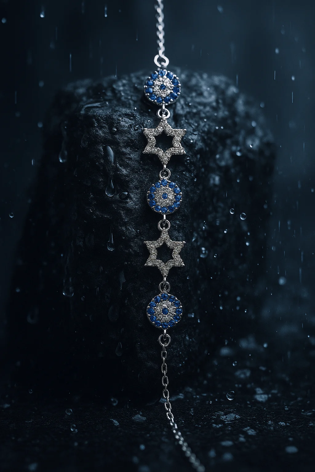 دستبند نقره ۹۲۵ زنانه طرح ستاره و چشمنظر 💙✨ لاکچری و ضد کدر شدن