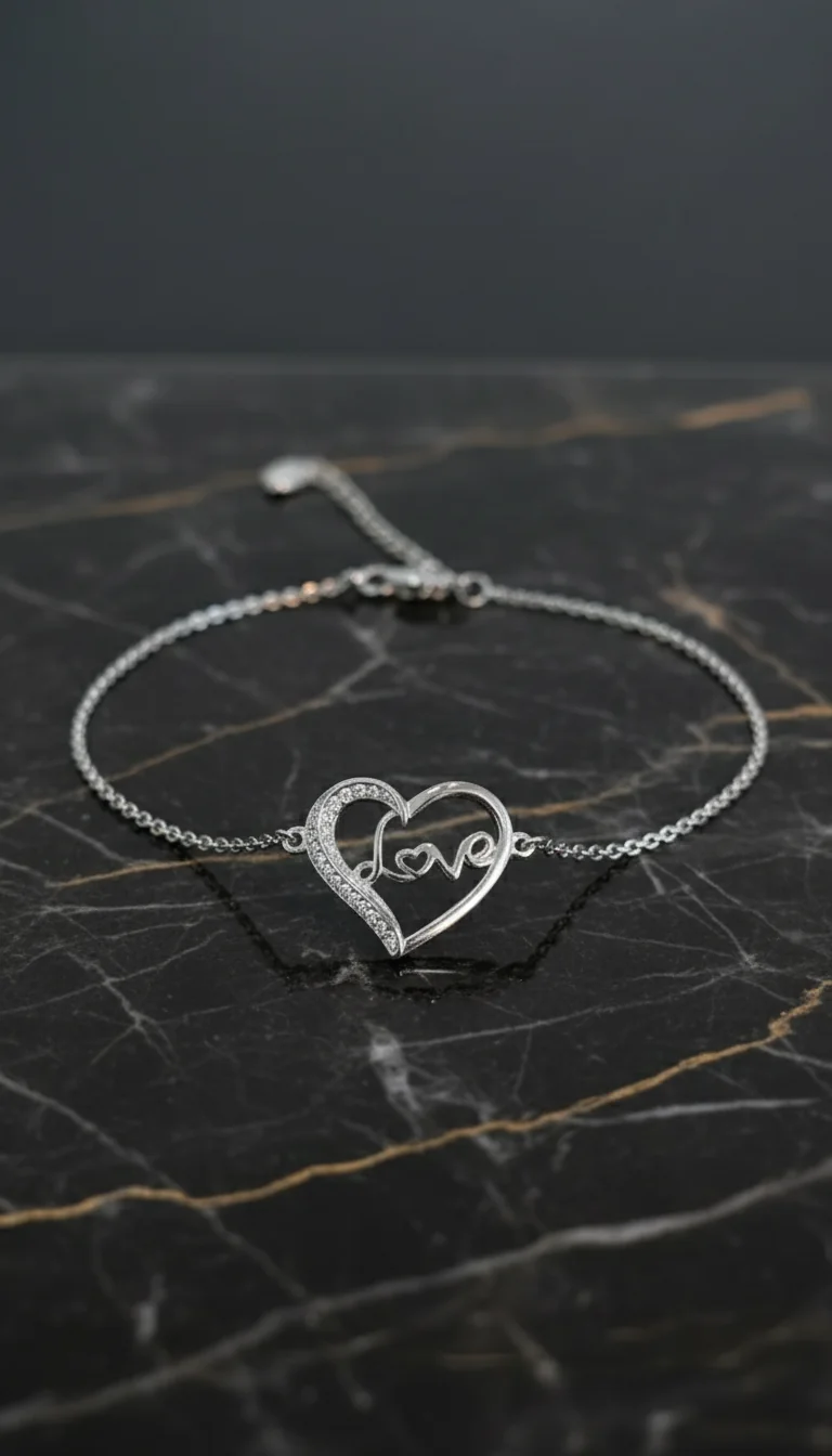 دستبند نقره ۹۲۵ طرح قلب Love 💖✨