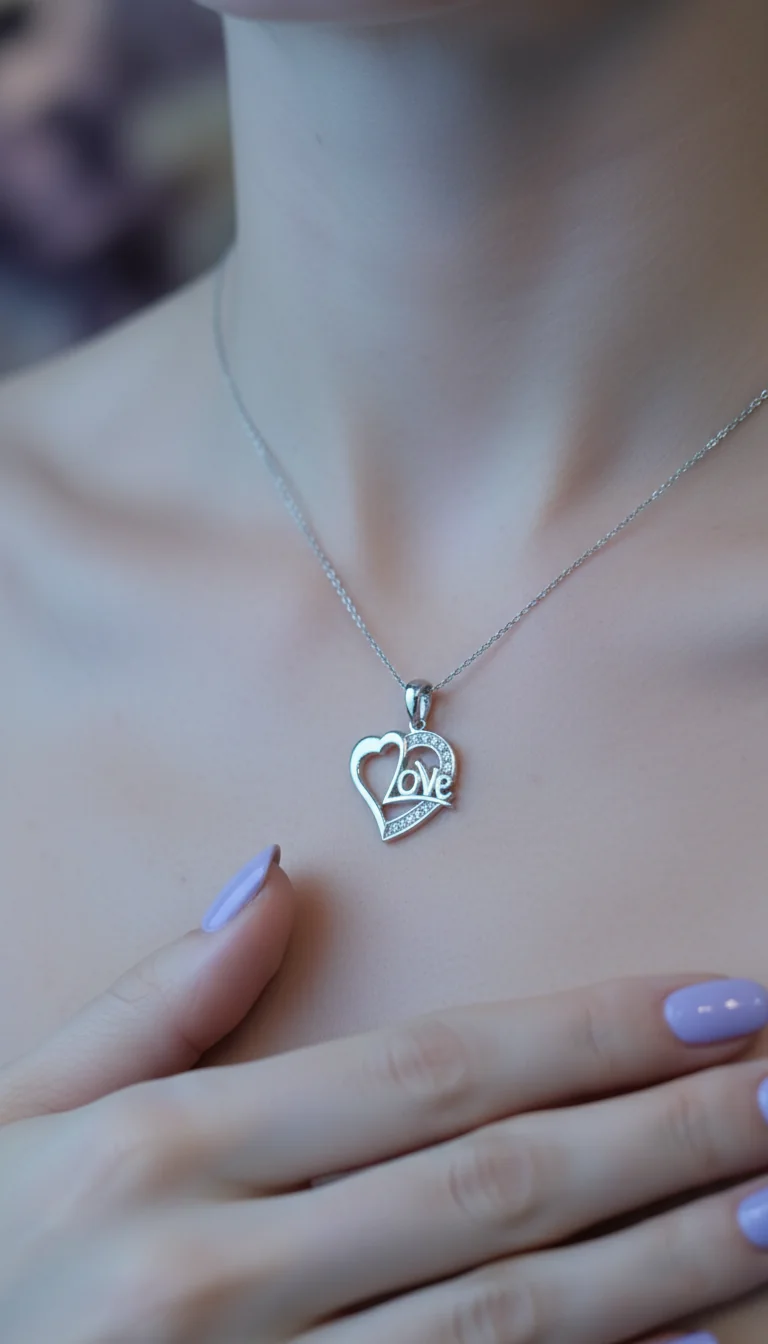 گردنبند نقره ۹۲۵ قلب Love نگیندار ✨❤️