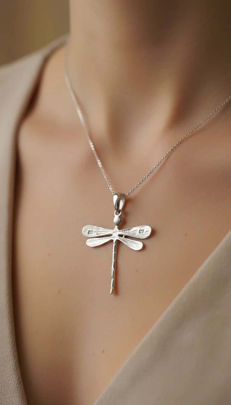 تصور کن یه سنجاقک ظریف و خوشفرم، از نقره اصل ۹۲۵ ساخته شده، با جزئیات دقیق بالها و بدن که حتی خط و نقش بالهاش هم کاملاً برجستهست ✨