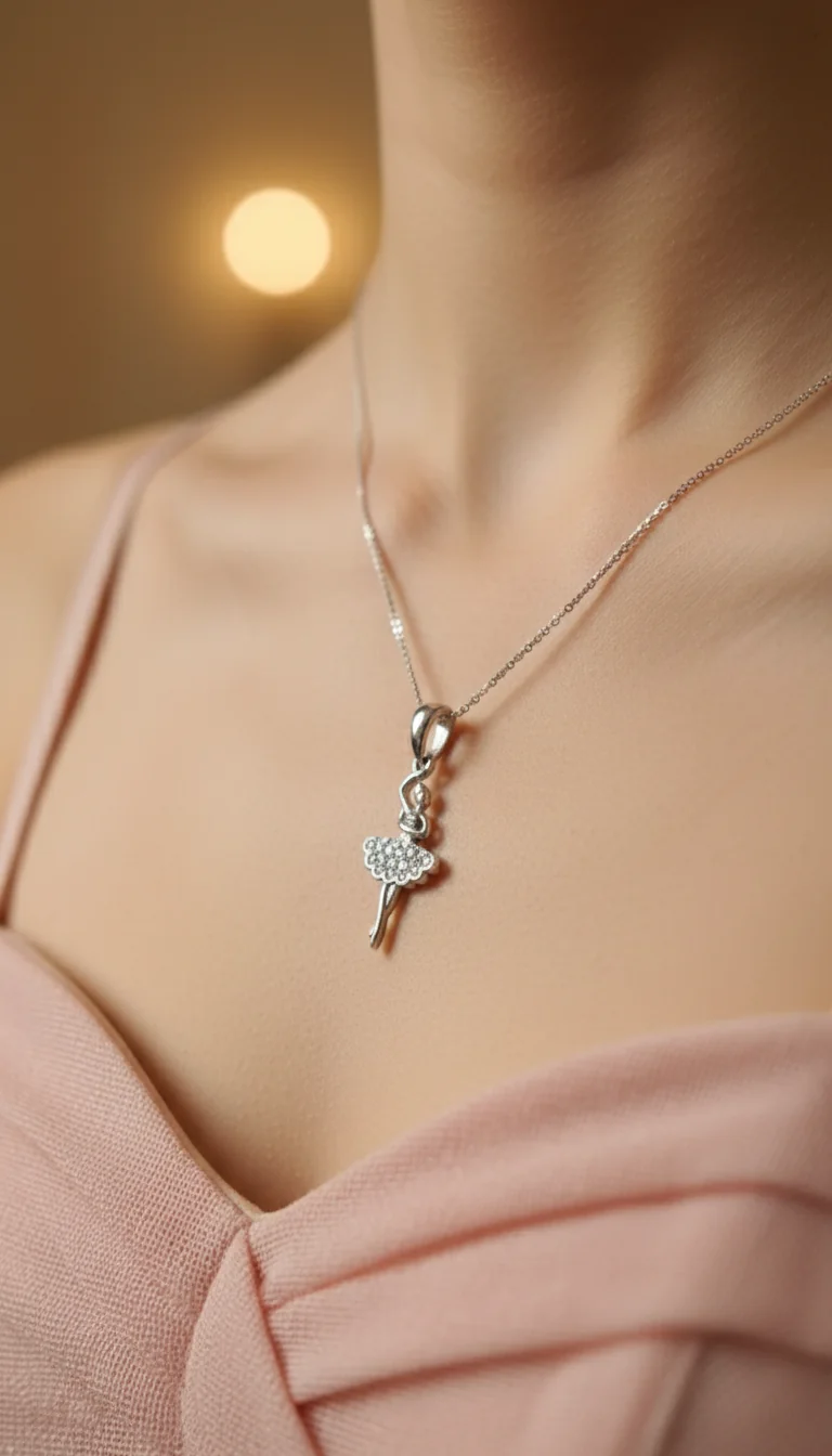 گردنبند نقره ۹۲۵ طرح بالرین 💃✨ – رقصی از ظرافت و درخشش