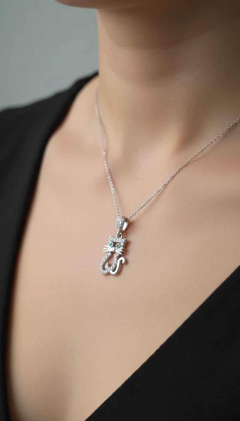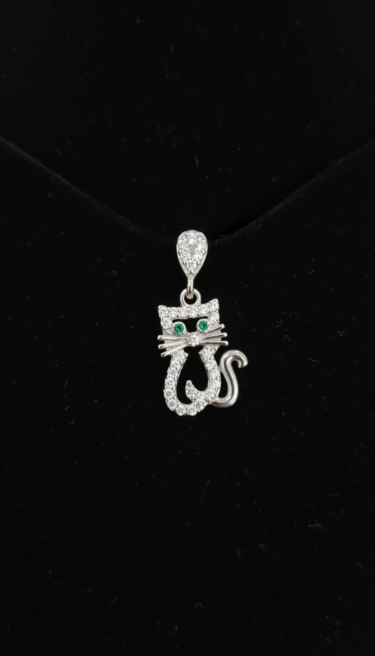 گردنبند نقره ۹۲۵ طرح گربه با چشمان زمردی 😻💎