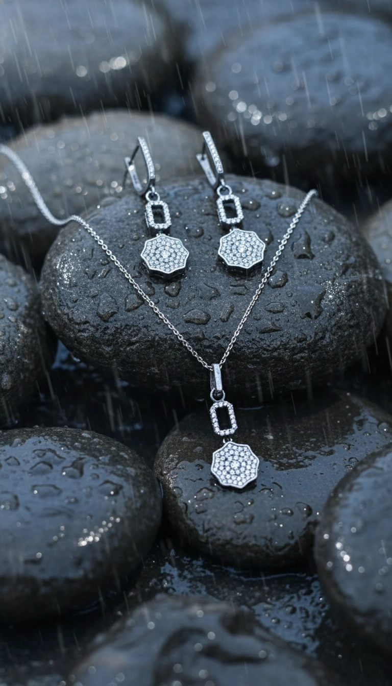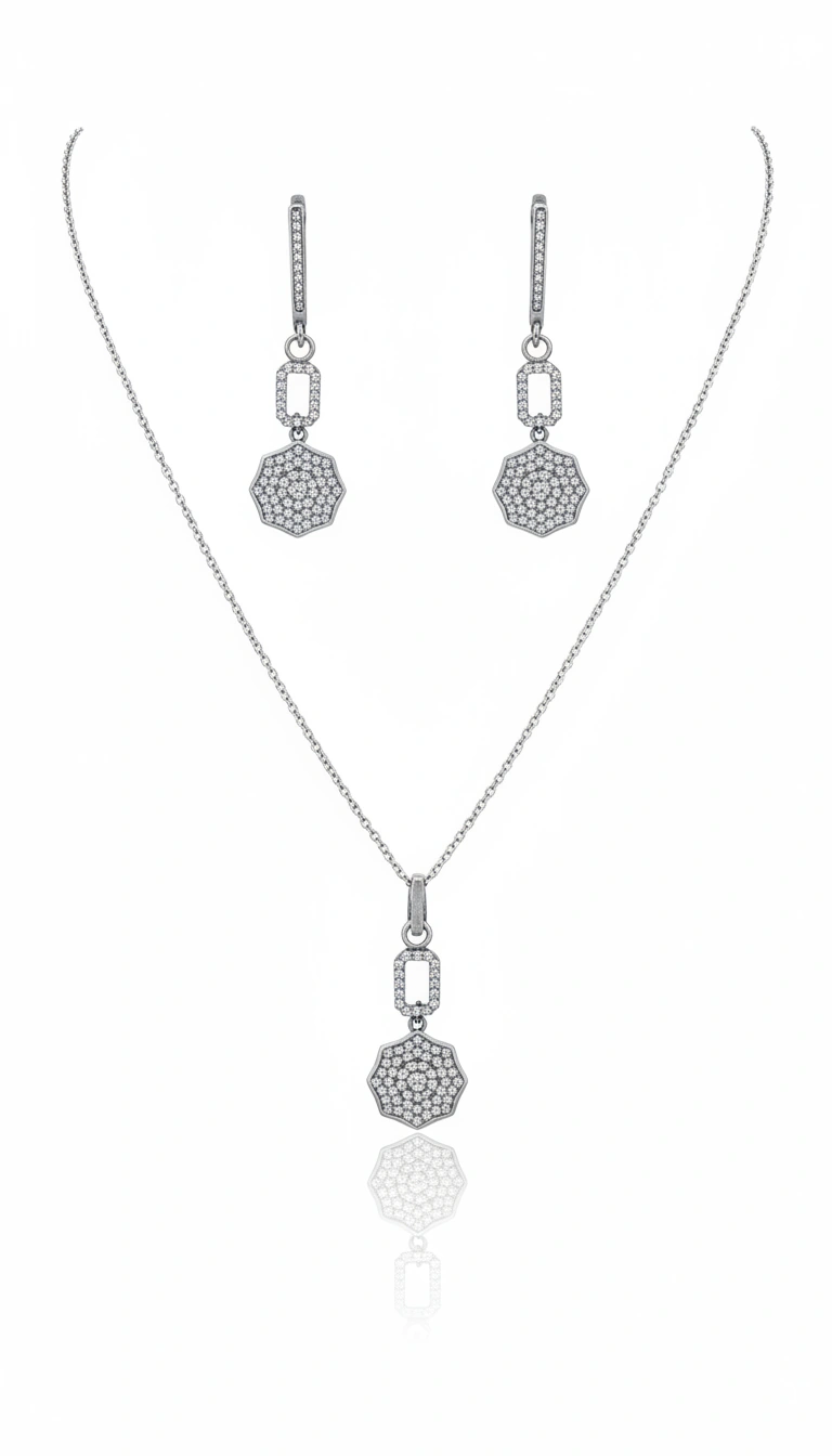 💎 ست نقرهای زنونه مدل هندسی لوکس
