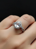 بدنهی انگشتر با عیار بالا ساخته شده، سنگ وسط (ببین چه ظرافتی داره! 😍) و اطرافش با نگینهای ریز تزیینی مثل حلقهی نور احاطه شده.