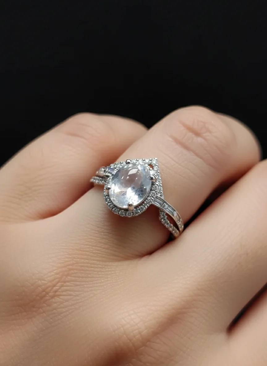 💍 انگشتر نقره زنانه با نگین درّ نجف اصل | سنگ شفاف نجف اشرف با طراحی خاص و معنوی