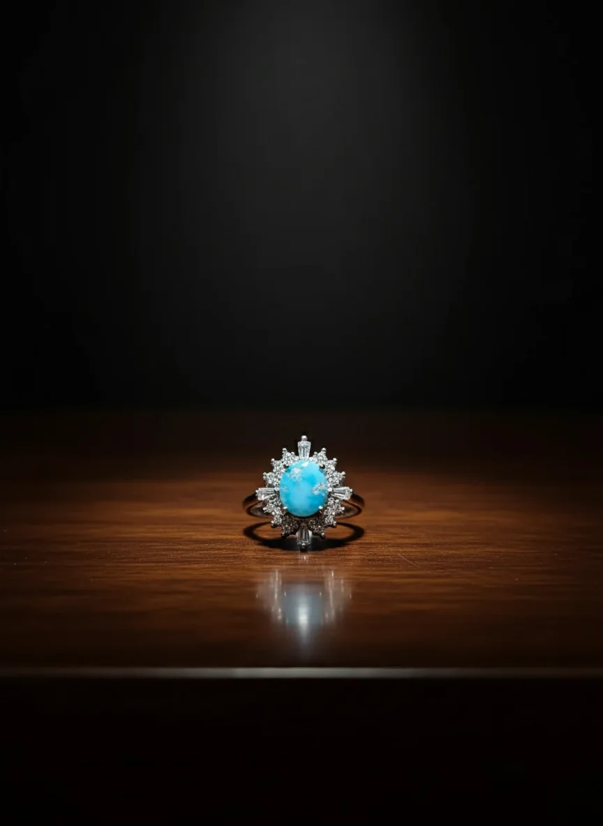 وسطش یه فیروزه نیشابور اصل جا خوش کرده؛ همون فیروزهای که نیشابور، با خاکِ پر از برکتش، قرنهاست به دنیا هدیه میده. رنگش؟ یه آبی عمیق و زلال، مثل قطرهای از آب چشمه در دل کویر.