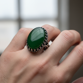انگشتر مردانه . نقره عیار 925 . طرح رکاب : صفوی و اشک . سنگ عقیق سبز . خیلی جذاب . نقره بقیع