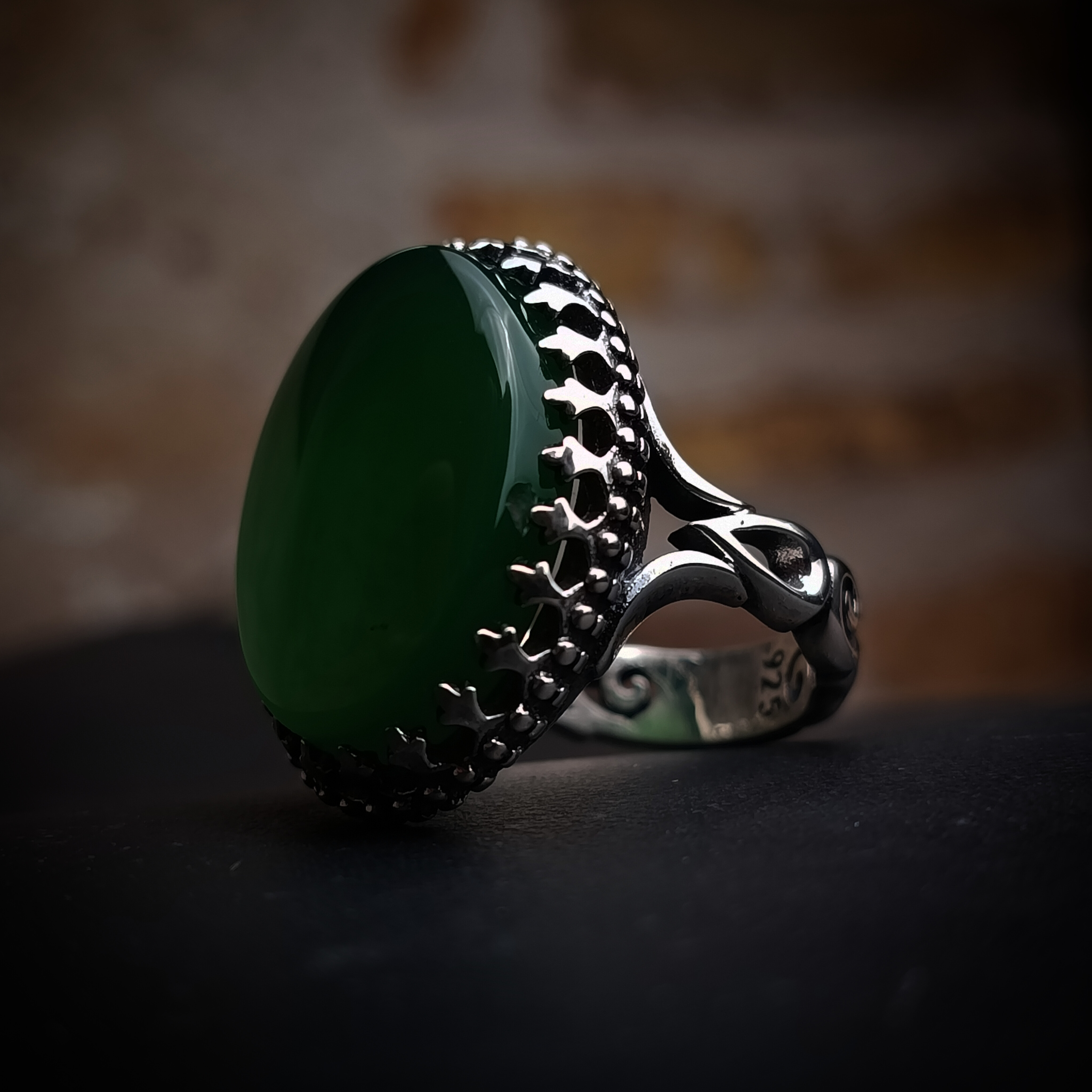 انگشتر مردانه . نقره عیار 925 . طرح رکاب : صفوی و اشک . سنگ عقیق سبز . خیلی جذاب . نقره بقیع