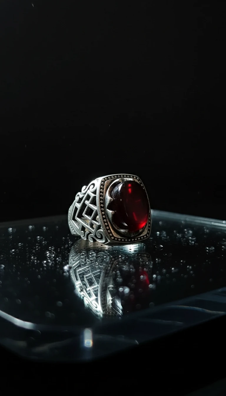 بدنهی این انگشتر از نقره عیار بالا ساخته شده و با جزئیات برجسته و حکاکیهای ریز، زیبایی دلربایی به خودش گرفته. اون بافتهای ظریف و پیچدرپیچ روی رکاب، باعث میشه حتی از فاصله دور هم چشم هر بینندهای برق بزنه ✨