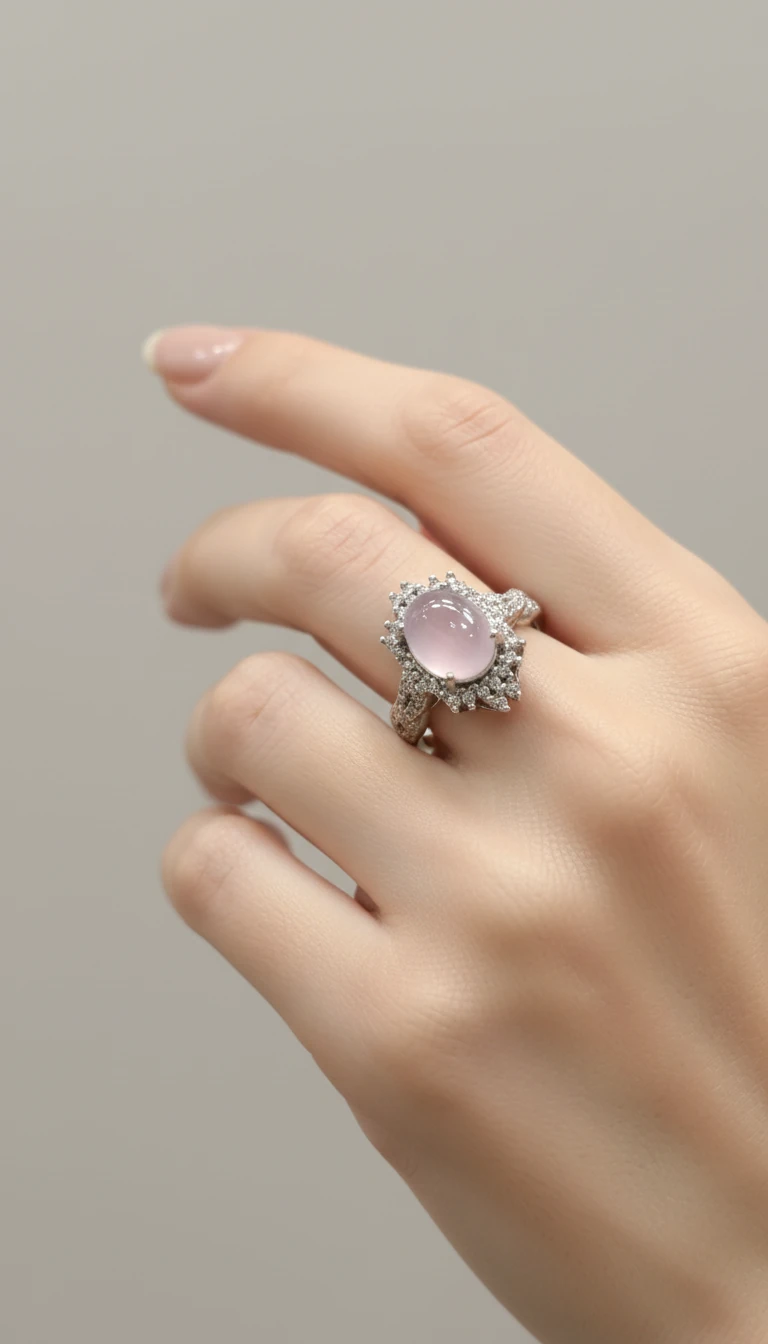 سنگ مرکزی این کار یک نگین خاص و نیمهشفافه که جلوهای بسیار لطیف و زنانه داره. دور تا دورش هم با ریزنگینهای درخشان تزئین شده تا زیبایی انگشتر چند برابر بشه ✨💠