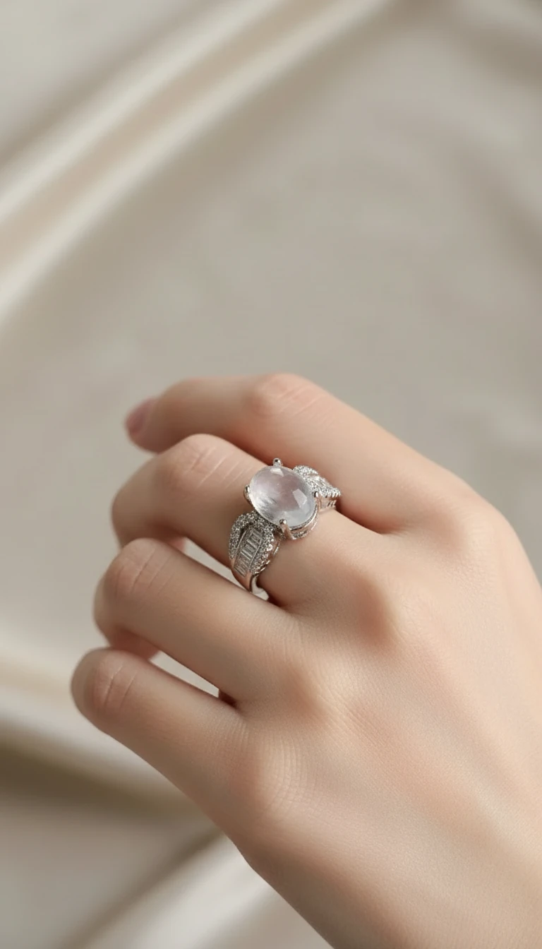 در مرکز انگشتر، سنگی از جنس درّ نجف اصل قرار گرفته؛ سنگی مقدس و زیبا که درخشش ملایمش حس آرامش و انرژی مثبت خاصی به انگشتر داده 🌙