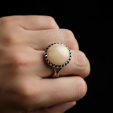انگشتر مردانه ، نقره عیار 925، سنگ در حسینی ، طرح رکاب صفوی همراه برگ ، نقره بقیع