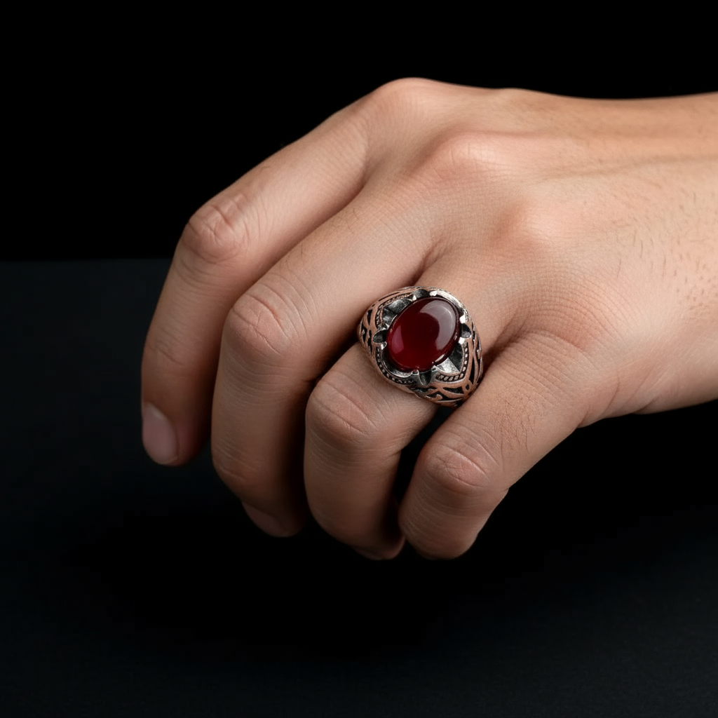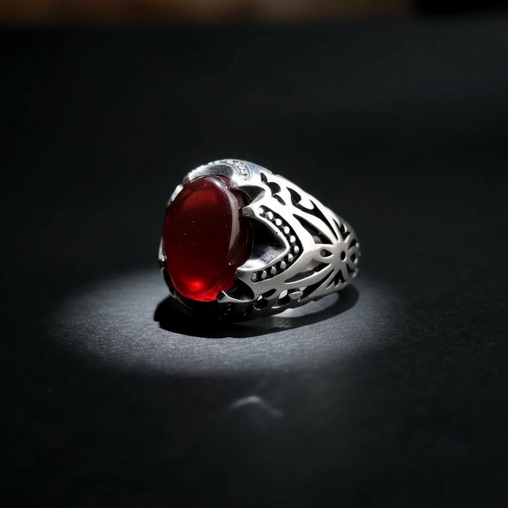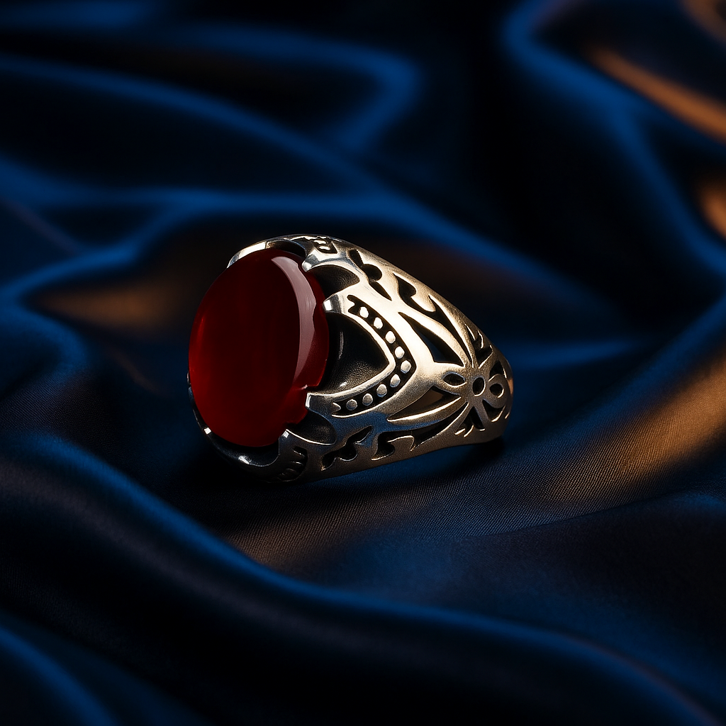 انگشتر مردانه نقره با عقیق سرخ و رکاب مشبک هنری 🔥