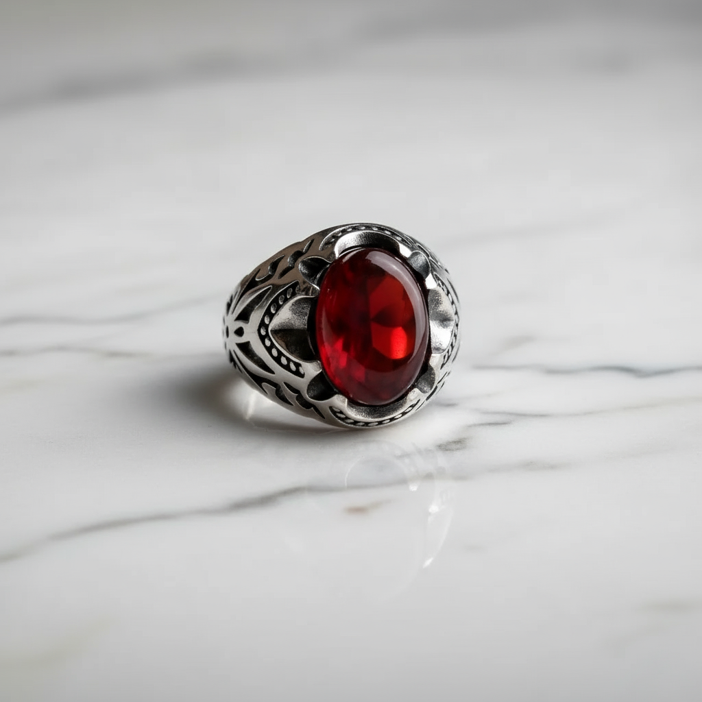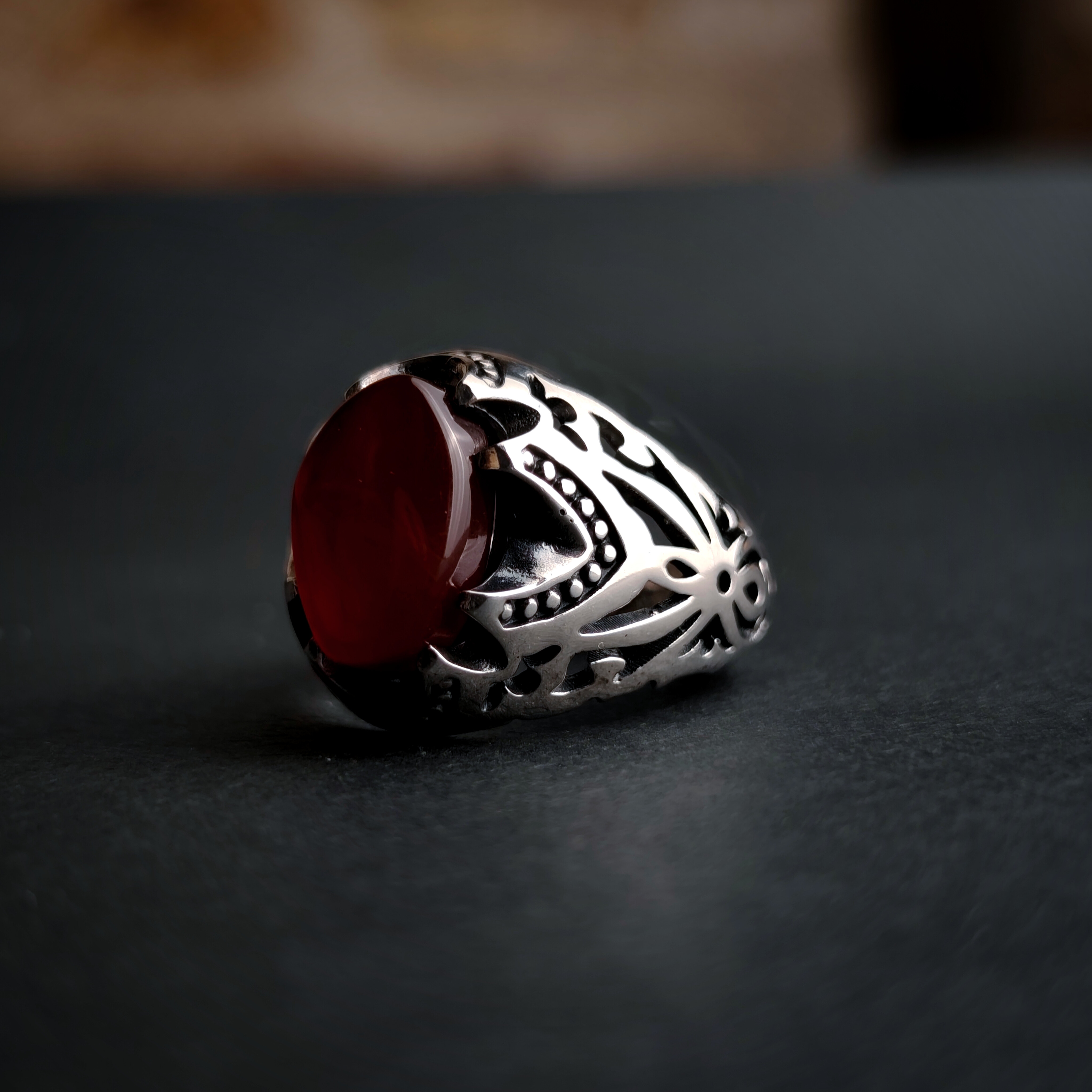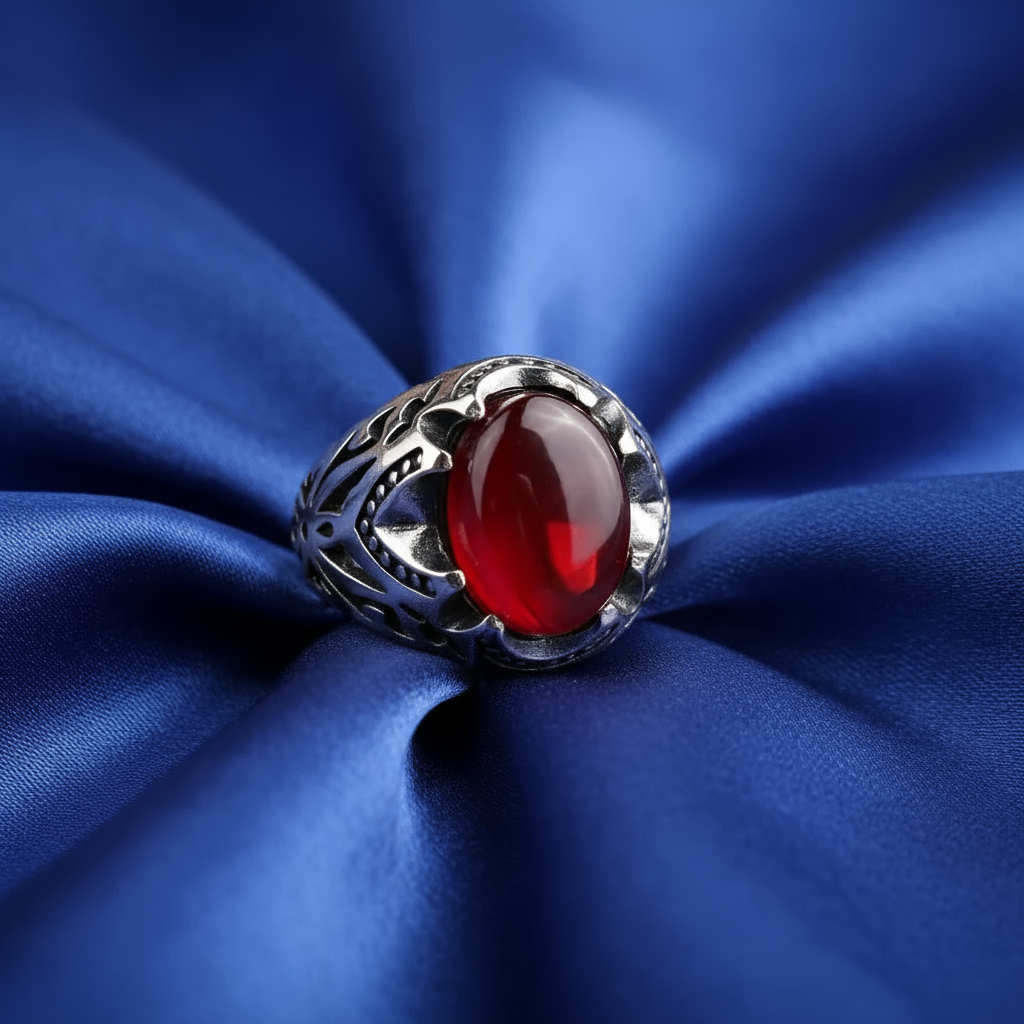 انگشتر مردانه نقره با عقیق سرخ و رکاب مشبک هنری 🔥