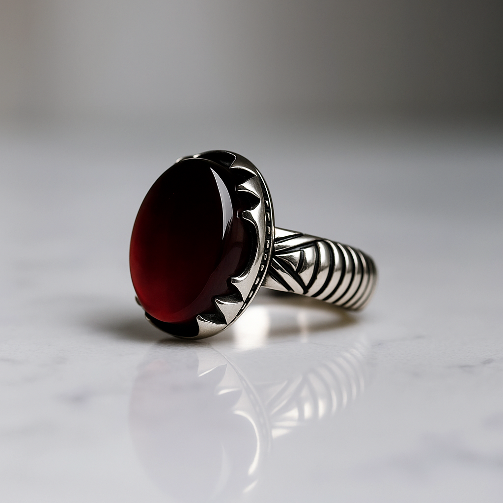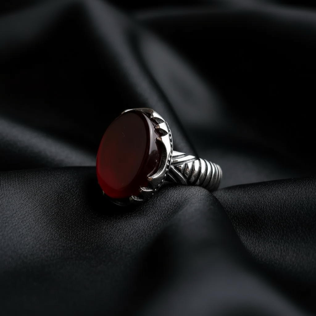 این انگشتر مردانه از با کیفیت ترین نقره موجود در بازار استفاده شده «عیار ۹۲۵» و بهترین قالب و دستگاه ها بدون هیچ نقصی👌🏻 طرح رکاب صفوی با سنگ عقیق سرخ طبیعی که زیبایی خاصی به دستان شما میدهد ، و برای دست های ظریف انتخاب خیلی خوبیه