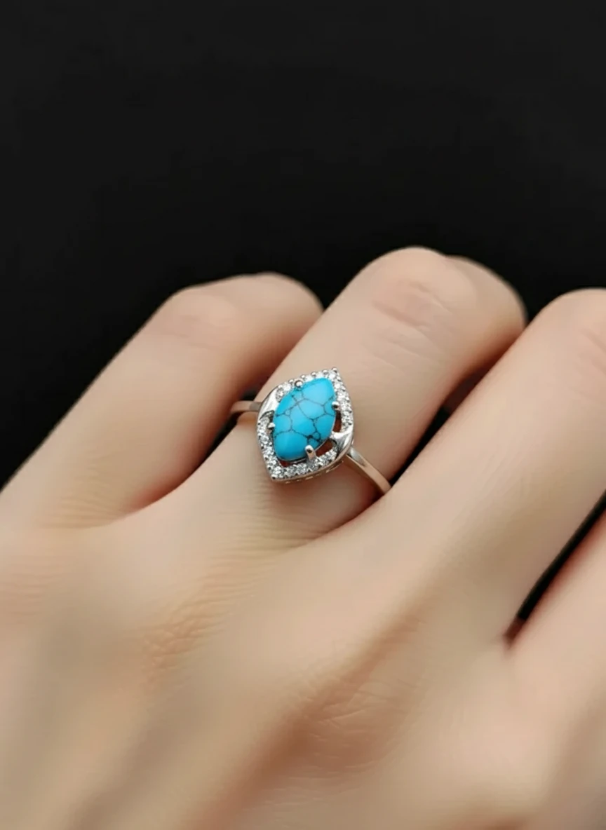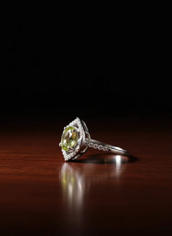 انگشتر زنانه نقره آبکاری رادیوم با طراحی ظریف و قابل تنظیم سنگ 💍