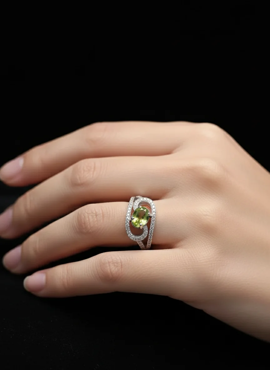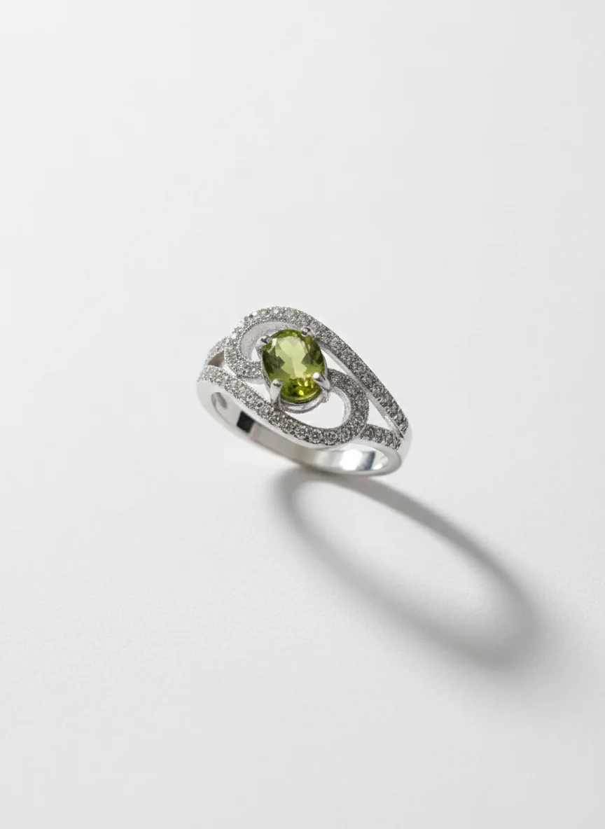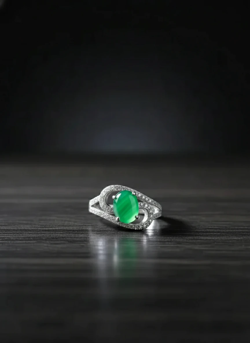 انگشتر نقره زنانه عیار ۹۲۵ آبکاری رادیوم زبرجد