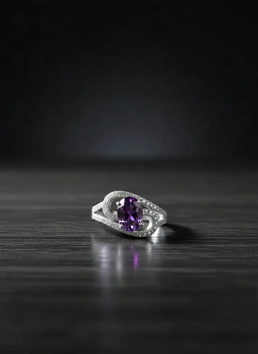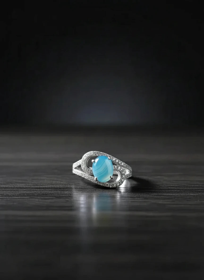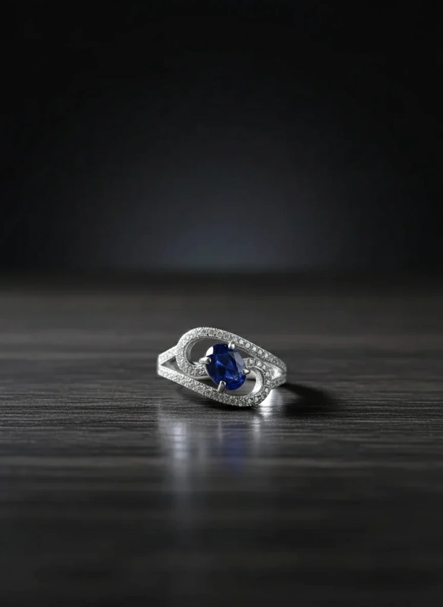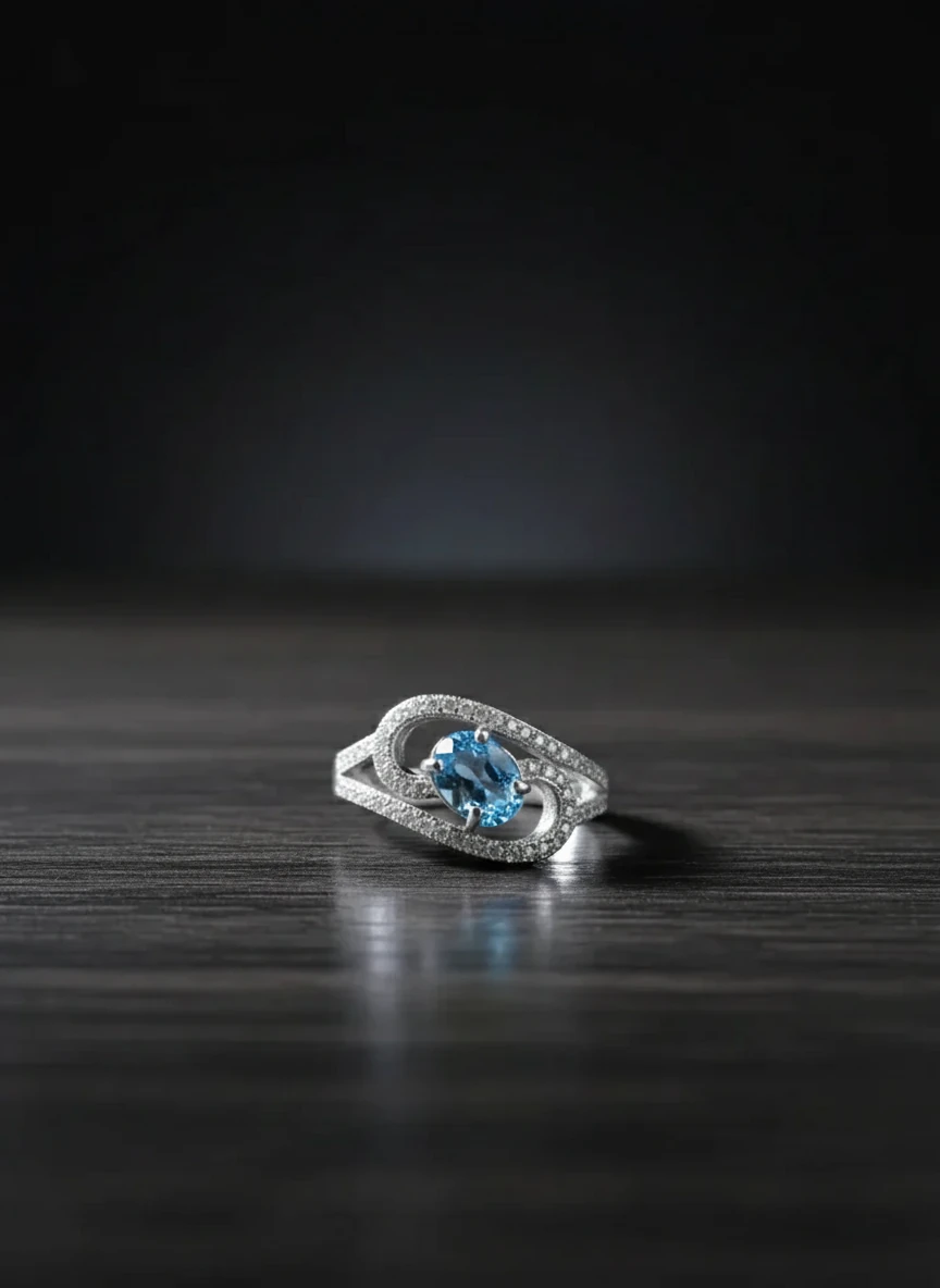 انگشتر نقره زنانه عیار ۹۲۵ آبکاری رادیوم زبرجد
