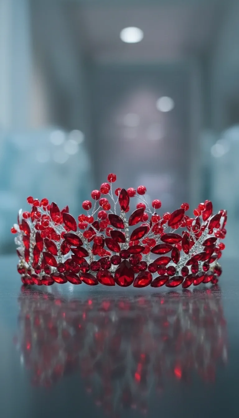 👑 تاج عروس نگین قرمز سلطنتی – وقتی میخوای روز عروسیت مثل یک ملکه بدرخشی، این تاج دقیقا همون چیزیه که دنبالش بودی ❤️💎