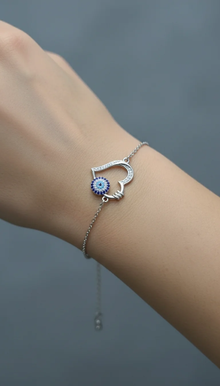 دستبند نقره ۹۲۵ طرح قلب و چشمنظر 💙✨